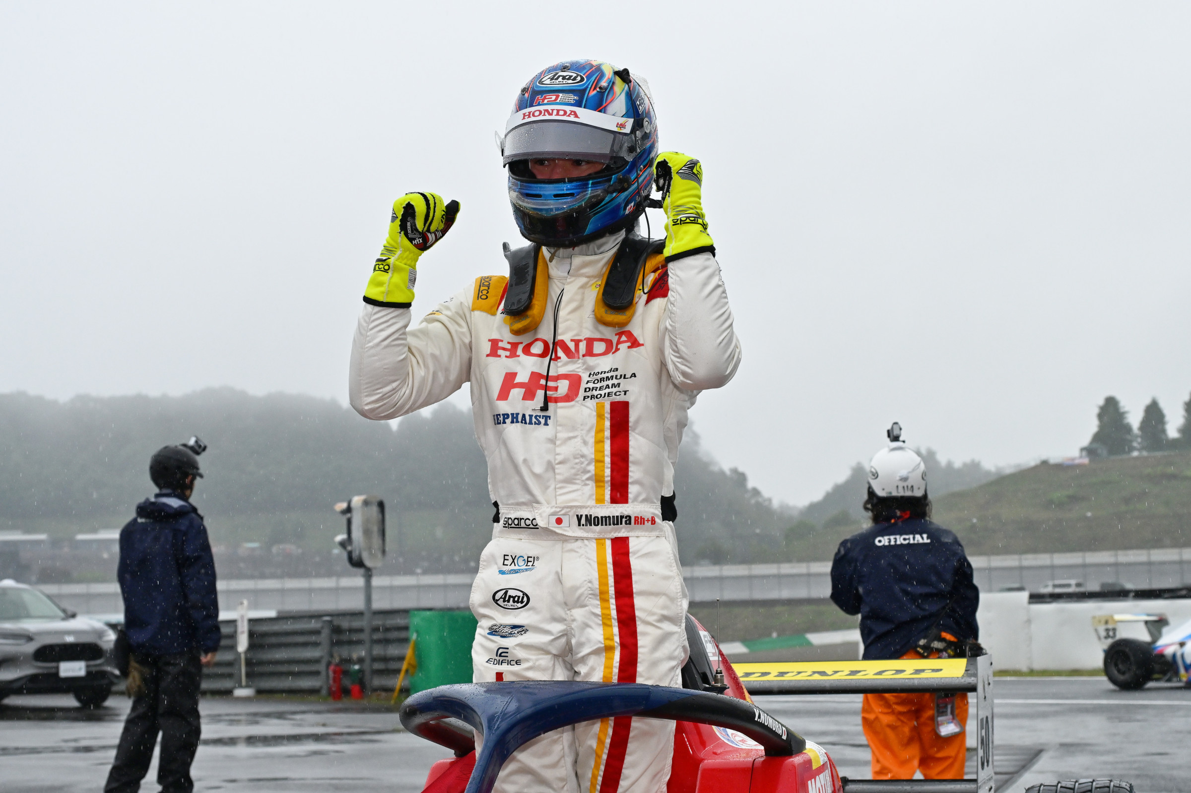 不安定な雨量とアクシデントの影響でセーフティーカーランが続いた第11戦は野村、洞地、佐野が表彰台に